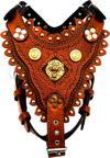 Aslan başlı tasarımıyla dikkat çeken bu göğüs tasması, köpeğinizin şıklığını tamamlar ve ona eşsiz bir görünüm kazandırır