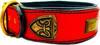 Özel tasarımıyla dikkat çeken kırmızı renkli deri köpek tasması, köpeğinizin şıklığını tamamlar
