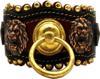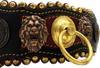 Türk Bayraklı, aslan başlı, pirinç halkalı özel tasarım deri köpek tasması