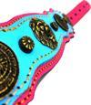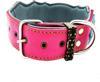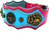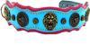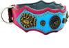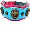 Pembe-Mavi aslan başlı yumuşak dokulu deri köpek tasması.