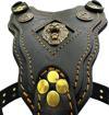 Özel tasarımıyla dikkat çeken siyah aslan başlı köpek göğüs tasması, köpeğinizin şıklığını tamamlar