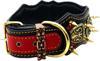 Özel tasarım pitbull aslan ve kalkan figürlü deri köpek tasması.