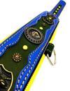 Ürünün üzerinde kullanılan metaller ve tasarımı tamamen tarafımıza Tasma Market firmamıza aittir. Ürün en üst kalite hakiki manda derisinden üretilmiştir. Avrupa standartlarına ve Uluslararası standartlarda bütün ülkelere uygundur. Yanlardaki delikler sayesinde ürünü dostunuzun boynuna göre, yukarıda belirtilen ölçü aralığında dilediğiniz şekilde ayarlayabilirsiniz. Ürünün derisi ve üzerinde kullanılan metaller son derece sağlamdır. Dostunuz için sağlıklı, konfor sağlayacak bir üründür. Tasmanın üzerinde savaşçı viking, viking gemisi ve kurt başı kullanılmıştır. Dış kısmı yeşil ve mavi iç kısmı ise sarı renktir.