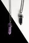 Ametist ve oniks doğal taşlarından oluşan bu kolye, benzersiz ve doğal bir parlaklık kazandırır