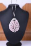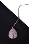 Taşmeran Marka Pembe Kuvars Doğal Taş Tel Sarmalı Kolye