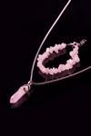 Pembe Kuvars Çivi 2 varyant olarak 42-57cm uzunlukta gümüş kaplama renkte zincir ile gönderilmektedir.