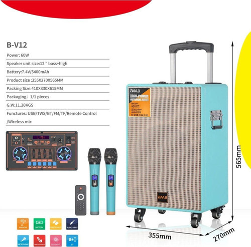 Tastech Ndr-Bv12 Büyük Boy Bluetooth Hoparlör Kablosuz Tekerlekli Taşınabilir Kablosuz Speaker Toplantı Anfi