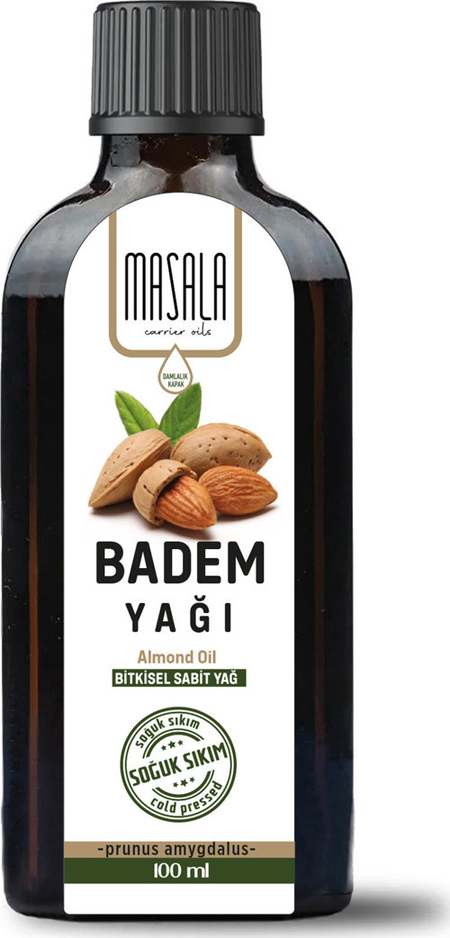 tatlı badem yağı, sweet almond oil, prunus amygdalus dulcis oil, masala tatlı badem, soğuk pres badem yağı, içilebilir badem yağı, doğal sabit yağ, 100 ml tatlı badem yağı