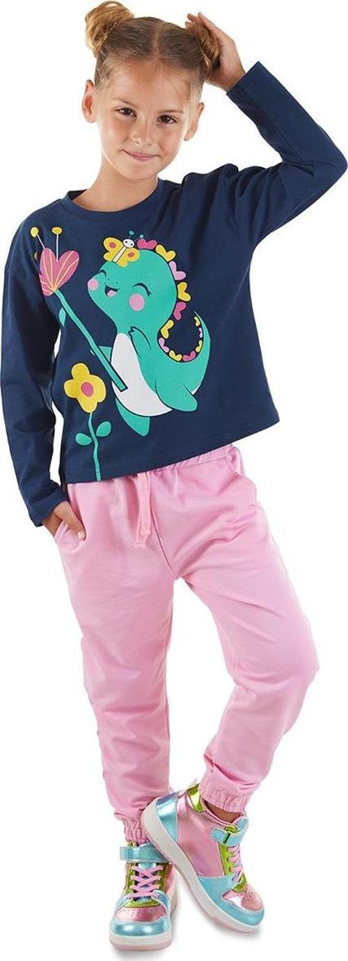2 parça kız çocuk pantolon ve t-shirt takım. Uzun kollu, pamuklu penye kumaştan t-shirt. Dinozor baskılıdır. Takımın pantolonu pembe pamuklu, orta kalın kumaştan üretilmiştir. 2 yan ceplidir. Beli lastikli ve kordonludur. Tüm Denokids ürünleri çocuk güvenliği düşünülerek üretilmiştir ve iğne dedektörlerinden geçirilmiştir.
