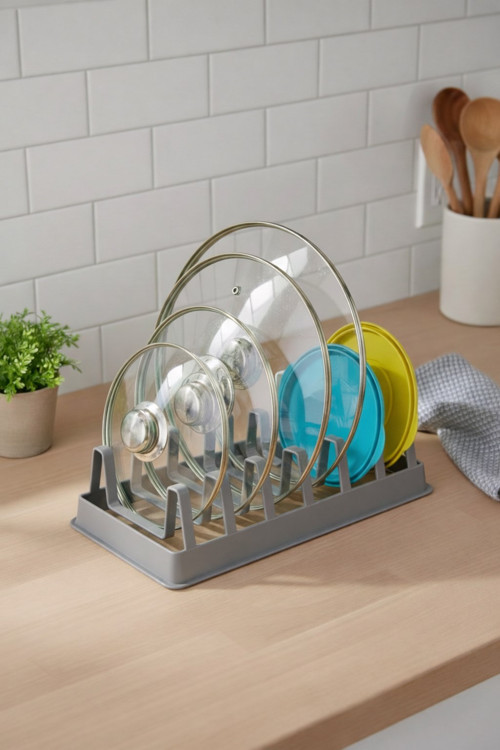- Tava ve tencere kapaklarınızı güvenli ve düzenli şekilde saklamanız için tasarlanan tezgah üstü tava kapak düzenleyici, mutfakta hem yer tasarrufu sağlar hem de pratik kullanım sunar.