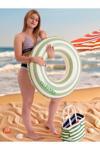 Yeşil renkli ve çizgili tasarımıyla dikkat çeken bu yüzme simidi, 76 cm çapındadır.