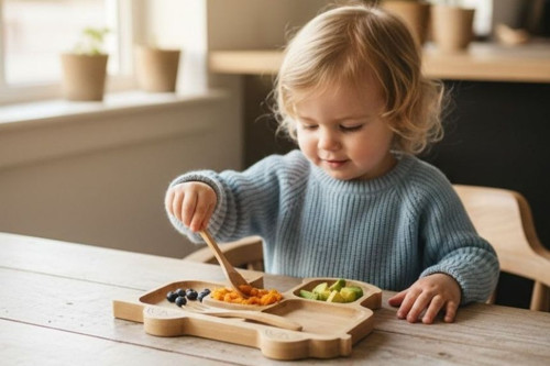 Tren Figürlü Bambu Bebek Mama Seti – Bölmeli Tabak + Kaşık Çatal Seti