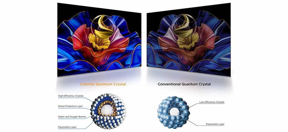 TCL QLED, daha stabil çok katmanlı nano koruma ve hassas işçilikle donatılmış bir sonraki nesil Renkli Kuantum Kristalini tanıtıyor. Bu yenilik, olağanüstü parlaklık ve derinlikle uzun süreli renk deneyimi sunar.