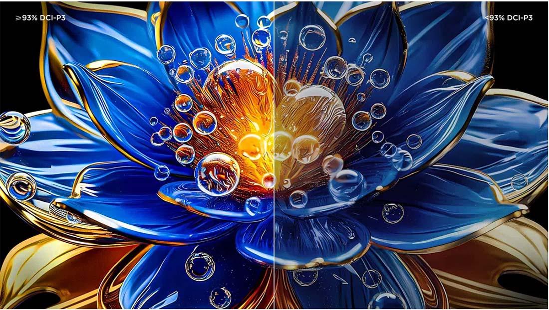 Kuantum Nokta teknolojisini kullanarak, canlı ve hassas renklerin 1.000.000.000'dan fazla tonunu ortaya çıkarır ve DCI-P3 standardına göre %93 renk gamı sunar. Dijital ortamları daha önce hayal edilemeyen şekillerde hayata geçirir.