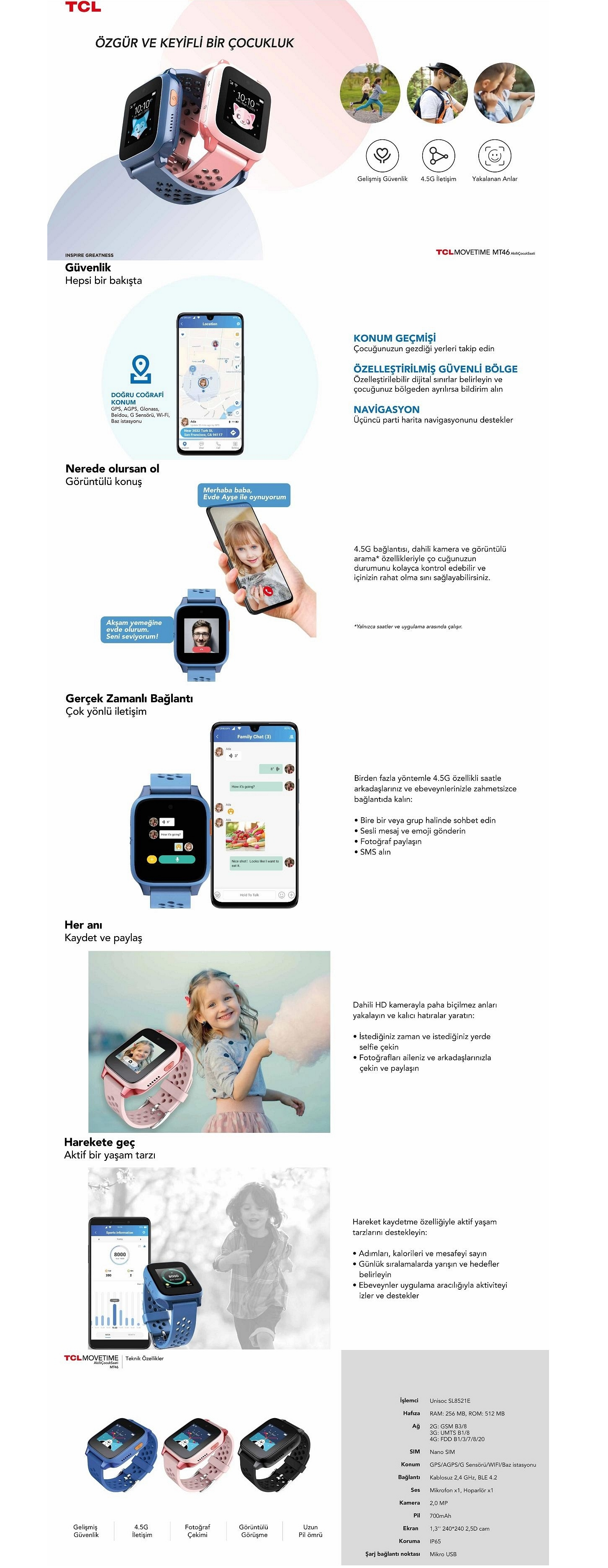 TCL Movetime MT46 Akıllı Çocuk Saati - Pembe