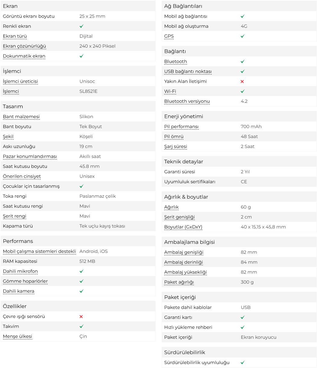 Kamera Var Titreşim Var GPS (Küresel Konumlama Sistemi) Var Sesli Görüşme Var Uyumlu Marka Android, iOS Cinsiyet Kız Çocuk, Erkek Çocuk Su Geçirmezlik Var Uyku Takibi Yok Adımsayar Var İşletim Türü Standart Kalp Ritmi Ölçme Yok