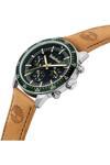 Ceasul casual Timberland Parkman TBL.TDWGF0029001 funcționează cu o mișcare cu cuarț alimentată de baterie. O curea din piele maro este combinată aici cu un plic argintiu din oțel inoxidabil. Atât cadranul, cât și luneta cu indicatoare de minute sunt păstrate în verde. Caracteristicile produsului includ un cronometru Day Date, un format de timp de 24 de ore și un strat luminescent pe mâini și indici.