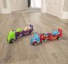 Ürünün Mavi Dino ve Yeşil Dino olmak üzere 2 farklı modeli bulunmaktadır. Set içerisindeki araba renkleri değişiklik gösterebilir.
