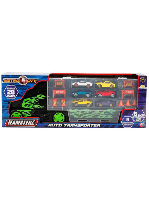 Teamsterz Metro City Taşıma Çantalı 6 Araçlı Taşıma Kamyonu Oyun Seti tam 6 adet metal araba ve trafik bariyerleri gibi 9 farklı aksesuarlarla geliyor. Sağlam ve dayanıklı taşıma kamyonu, toplam 28 araca kadar taşıma kapasitesine sahiptir. Üstelik her iki yana açılan kapıları sayesinde arabaları yüklemek de indirmek de oldukça kolay! Kamyonu doldur, kapıları aç, arabaları sırayla indir… Her seferinde yeni bir görev, yeni bir hikaye seni bekliyor. Uzun yolculuklar, şehir içi görevler, acil taşımalar… Hepsi bu kamyon ile mümkün!