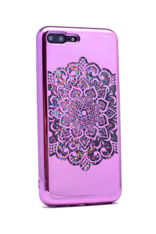 iPhone 5 Kılıf Lazer Çiçekli Sıvılı Silikon - Pembe