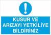 Kusur Ve Arızayı Yetkiliyle Bildiriniz Uyarı Levhası