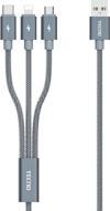 Tek USBA ucundan 3 farklı tipte çıkışa sahip Şarj ve Data kablosudur. Lightning, Micro USB , Type-C uyumlu tüm tablet, telefon ve multimedya cihazlarınızı aynı anda şarj edebilir veya bilgisayarınıza bağlayabilirsiniz. Hızlı Veri aktarımına uygundur. Kablo uzunluğu 1 metredir. Port girişleri Alüminyum Metal olarak ldukça sağlamdır. Defalarca bükülme testine tabi tutulmuştur. Max 2A akım gücünü destekler. Aynı anda 3 cihazı hızlı şarj edebilir. Sorunsuz uzun yzaman sorunsuz kullanabileceğiniz bir kablodur. Naylon Örgülü ve Dolaşmayan Tasarım . 3'ü 1 Arada Micro, Lightning, Type-C Şarj Kablosu