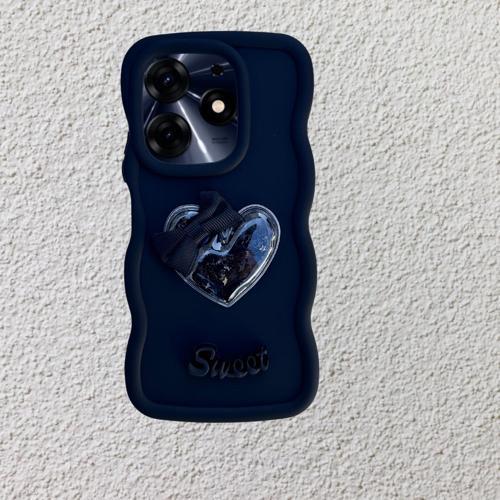 Tecno Spark 10 Pro Renkli Kalp Kurdele Detaylı Simli Dalgalı Sweety Kılıf SİYAH
