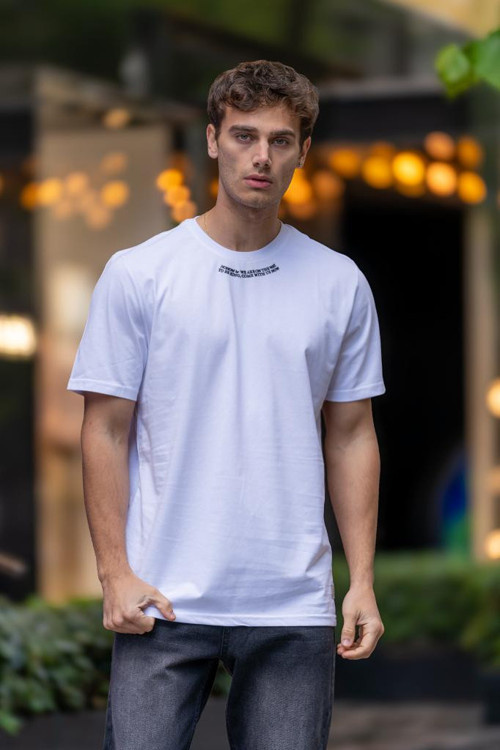 TEDDY Oversize Bisiklet Yaka Pamuklu Tişört - Beyaz