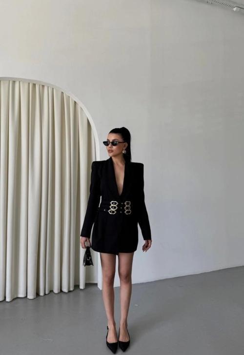 TEK DÜĞME CEKET 3 TOKALI KEMER SÜSLÜ - Siyah