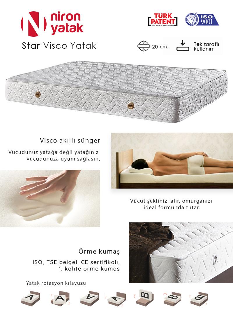 Niron Tek Kişilik Lüks Ergonomik Visco(Yaysız) Yatak 120x190cm Niron Star