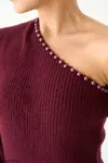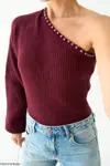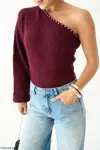 Tek kollu tasarımı, farklı kombinler oluşturmanıza olanak tanırken, inci detayları ile zarif bir görünüm elde etmenizi sağlar. Bu kazak, hem günlük kullanım hem de özel davetler için mükemmel bir seçenek olarak öne çıkmaktadır.