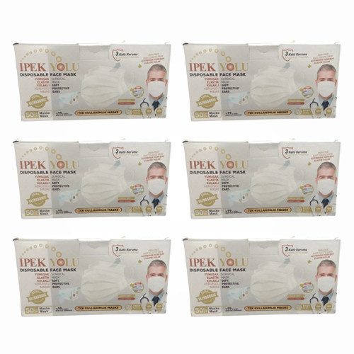 İpekyolu Tek Kullanımlık Maske 3 Katlı Telli Meltblownlu 50'li Kutu - Beyaz x 6 Kutu
