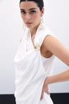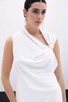 Sateen Tek Omuz Aksesuarlı Bluz - Ekru