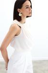 917 Bisiklet Yaka Fitilli Kolsuz Bluz - Ekru - Image 1