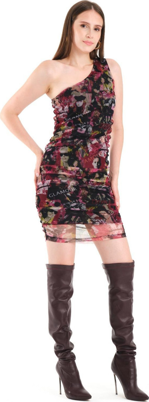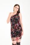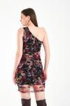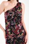 - Zarif tasarımıyla dikkat çeken tek omuz tül elbise, dijital baskı teknolojisi ile üretilmiştir.