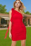Bu göz alıcı tek omuzlu mini elbise, özel günlerinizde şıklığınızı ve feminenliğinizi ön plana çıkaracak şekilde tasarlandı. Hafif ve nefes alabilir yapısıyla yaz akşamlarında sizi serin ve rahat tutacak. Üzerinde bulunan drapeli gül detayı ve fırfırlı tasarımı, elbisenin zarif ve dikkat çekici görünümüne katkıda bulunur. Elbise, vücut hatlarınızı zarifçe sararak, kendinizi güvende ve özgüvenli hissetmenizi sağlar. Özel günlerinizin yıldızı olmak için mükemmel bir seçimdir.