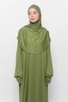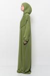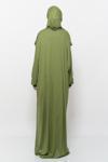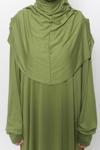 - Öncelikle namaz elbisesini başınızı ve kollarınızı geçiçerek giyiniz. Sonrasında dilediğiniz zaman dökümlü yapısıyla boynunuzu kapatan pratik hijabı başınızdan geçirerek boneye ihtiyaç duymadan kullanabilirsiniz.