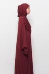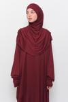 - Öncelikle namaz elbisesini başınızı ve kollarınızı geçiçerek giyiniz. Sonrasında dilediğiniz zaman dökümlü yapısıyla boynunuzu kapatan pratik hijabı başınızdan geçirerek boneye ihtiyaç duymadan kullanabilirsiniz.