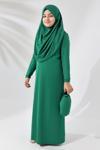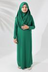 Bu namaz elbisesi, çocukların namaz kılmaya olan ilgisini ve kolaylığını artıran özel tasarımıyla dikkat çekiyor. Başörtüsü ile birlikte tek parça olan bu elbise, çocukların namaz öncesi hazırlık sürecini pratik hale getiriyor ve kolaylaştırıyor. Esnek ve bol kumaşıyla hareket özgürlüğü sağlarken, sade ve işlevsel yapısıyla dikkat çeker.