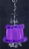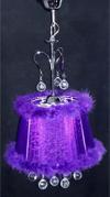 Klasik tasarımıyla her yatak odasına uyum sağlayan mor tüylü taşlı avize, mekanınıza şıklık katar