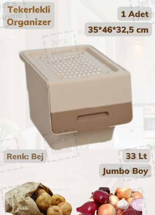Tekerlekli Erzak Kutusu BPA Free Sebzelik Soğanlık Hava Alır Oyuncaklık Krem 33 Lt