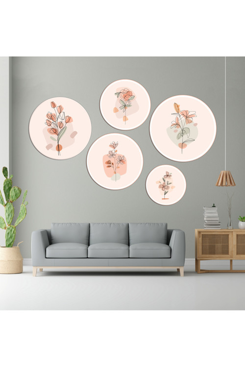 Tekin Store Renkli Çiçekler Yuvarlak 5'Li Ahşap Tablo