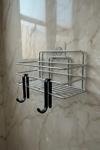 Şampuan, duş jeli, sabun, krem gibi ürünlerinizi düzenli şekilde yerleştirmenizi sağlarken; 2 adet siyah askı kancası sayesinde lif, kese, sünger ve havlu gibi eşyalarınızı asabileceğiniz ekstra alan sunar.