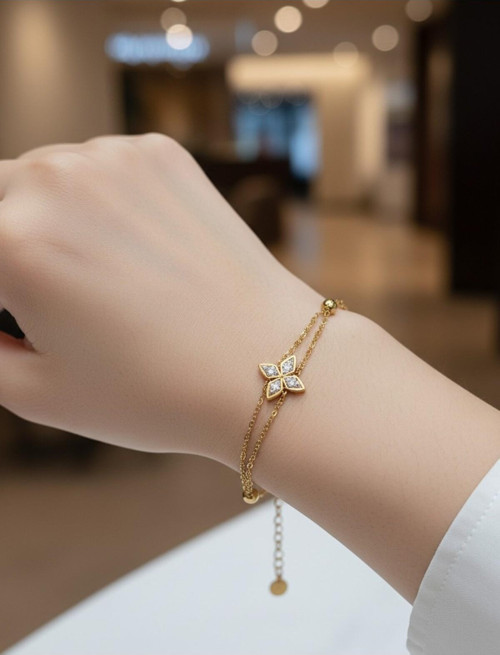 Tekli Yonca Altın Rengi Kadın Bileklik