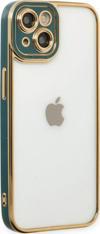 Teknomoda iPhone 13 Uyumlu Kılıf Kamera Lens Korumalı Kenarları Renkli Gold Arkası Şeffaf Silikon