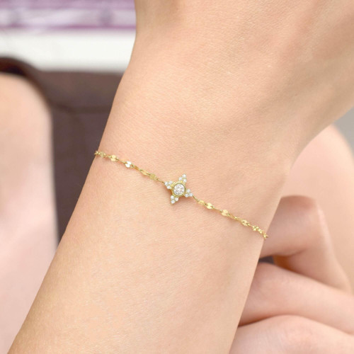 Tektaşlı Çiçek Altın Bileklik