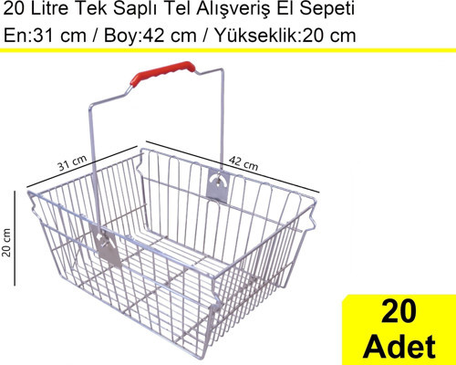 20 litre tek saplı tel alışveriş el sepeti mağazanızda mutlaka bulundurmanız gereken ideal ölçülerindedir. Oldukça hafif bir formda tasarlanan 20 litre tel market alışveriş sepeti, müşterilerinizin aldıkları ürünleri rahat bir şekilde taşıması ve kullanım kolaylığı açısından özel olarak tasarlanmıştır. Böylece alışverişlerini daha rahat ve konforlu şekilde yapmalarına olanak sağlamış olursunuz, bu da sepet ortalamalarınız arttırmanıza yardımcı olacaktır.