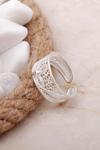 - Yüzüğün parmağı çevreleyen halkası alt bölümden açık olduğundan halkayı içe veya dışa doğru esneterek istenilen ölçüye göre kullanabilirsiniz.