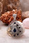 Telkari İşlemeli Safir Taşlı Tasarım Laleli Gümüş Kolye