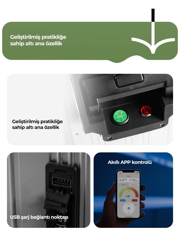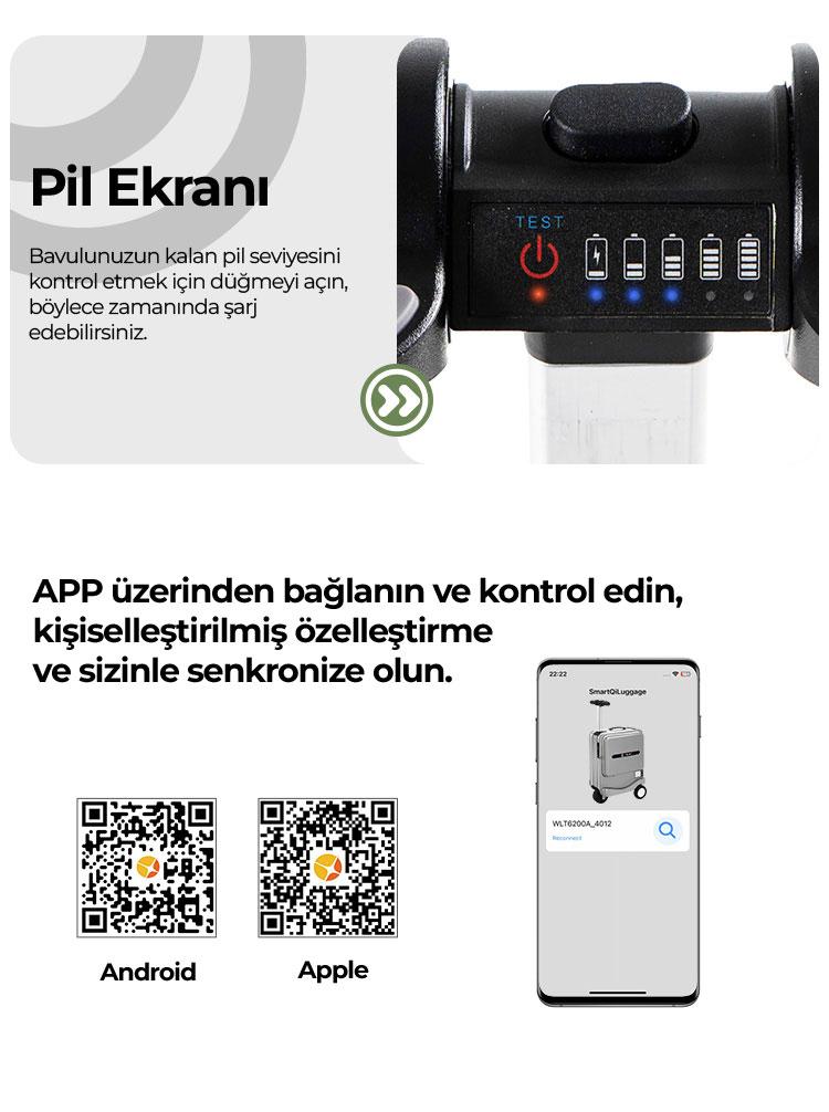 - Akıllı APP Kontrolü: Mobil uygulama üzerinden valizinizi kontrol edebilirsiniz.